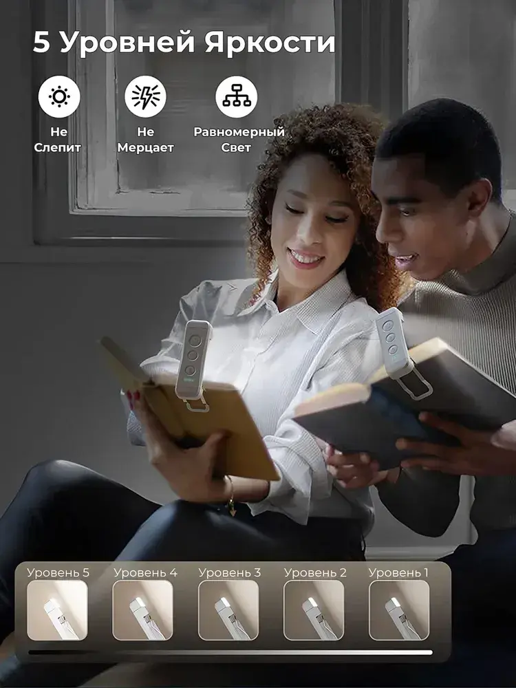 Мощная батарея • Стандартный USB-разъем (источник питания с силой тока равной 1А) • Индикация уровня заряда (4 светодиода) • Мощный аккумулятор (до 80ч работы в зависимости от режима работы) Гибкий и компактный • Изгибается под углом 90 градусов влево/вправо, 45 градусов вверх/вниз • Угол открытия зажима 150 градусов • Не издает шума при открытии и закрытии Легкий • Весит всего 40гр, намного легче обычных фонариков для чтения • Маленький и портативный, идеален для путешествий • Компактен для любого использования Прочный и крепкий • Мягкие края прещепки не режут бумагу книги • Надежно крепится к книге в мягкой или твердой обложке и обладает превосходной гибкостью. • Безопасен для детей s3/multimedia-3/ww1200/6750561531.jpg s3/multimedia-0/ww1200/6750561528.jpg s3/multimedia-2/ww1200/6750561530.jpg s3/multimedia-1/ww1200/6750561529.jpg