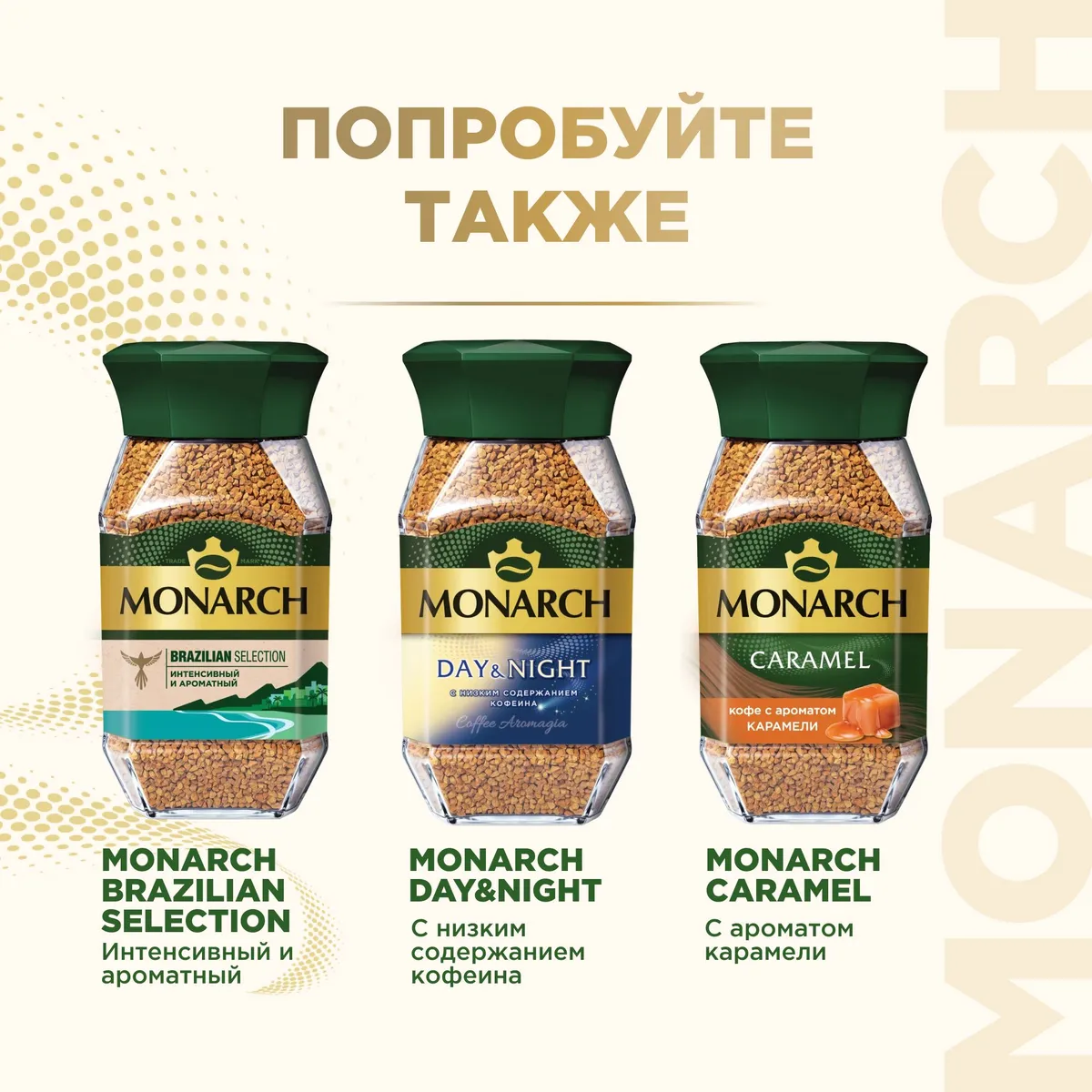 МИР МЕНЯЕТСЯ, И МЫ ВМЕСТЕ С НИМ. ВСТРЕЧАЙТЕ КОФЕ MONARCH! ВСЕ ТОТ ЖЕ ЛЮБИМЫЙ ВКУС И АРОМАГИЯ: Богатый, насыщенный вкус и волшебная сила Аромагии остаются с вами в каждой чашке кофе Monarch! Мы сохраняем высокое качество и традиции производства, чтобы вы всегда могли наслаждаться любимым кофе. ТЕ ЖЕ САМЫЕ КАЧЕСТВО И ПРОИЗВОДСТВО Наша компания всегда заботится о том, чтобы качество продукта оставалось неизменным, и потребитель мог в любой чашке кофе почувствовать тот же вкус и аромат, к которому он привык за многие годы. Эту задачу решают специалисты отдела исследований и разработки отдела качества. Рецептура нашего кофе уже более 22 лет контролируется строгими стандартами. Это контроль каждого этапа производства и всех процессов приготовления того же самого качественного кофе, который вы так любите. Чтобы обеспечить соответствие высоким стандартам компании, входной контроль качества сырья осуществляется на постоянной основе. РЕЦЕПТ КОФЕЙНО - БАНАНОВОГО СМУЗИ: ИНГРЕДИЕНТЫ: 1 ч.л. кофe Monarch Monarch Hazelnut; горячая вода; йогурт; банан; лед; сахар; карамель для украшения; СПОСОБ ПРИГОТОВЛЕНИЯ: Заварите чашечку кофе Monarch Hazelnut. Кофе, обезжиренный йогурт, нарезанный банан и кубик льда тщательно взбейте в блендере до образования нежной пенки. В любимую чашку наливаем полученный кофейно-банановый смузи и наслаждаемся! ПОПРОБУЙТЕ ТАКЖЕ: Monarch Brazilian Selection — с зёрнами бразильской Aрабики, бережно выращенными и собранными на солнечных плантациях Бразилии и мастерски обжареными для создания неповторимого интенсивного вкуса и аромата кофе! Monarch Day&Night, с низким содержанием кофеина. Наслаждайтесь насыщенным ароматом и деликатным вкусом кофе после обеда и даже поздним вечером. Monarch Caramel, насладитесь аппетитным сочетанием карамельного аромата и вкуса деликатно обжаренных кофейных зёрен. Показать полностью