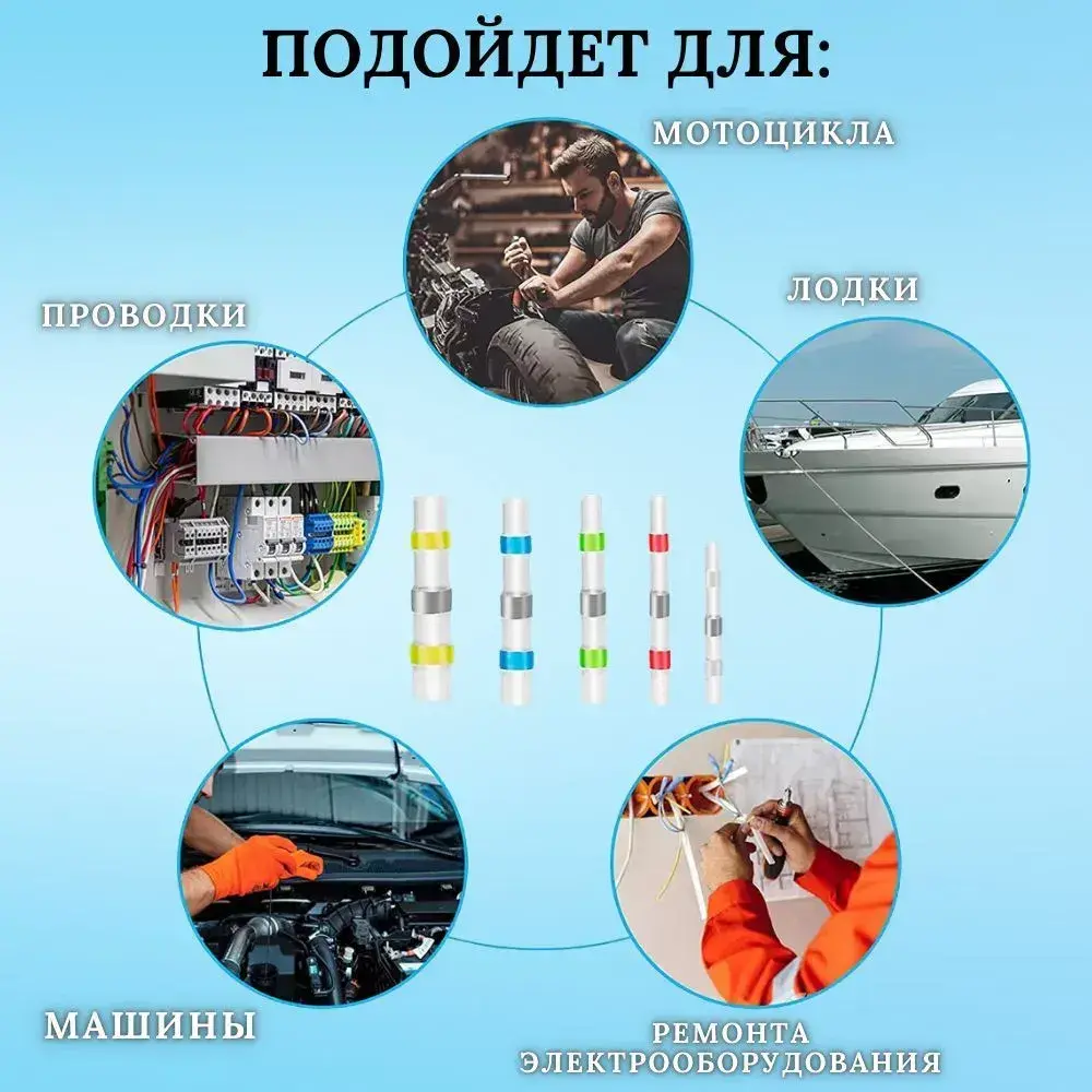 Надежные термоусадочные трубки для проводов – идеальное решение для пайки, изоляции и герметизации! В нашем наборе термоусадочных трубок вы найдете все необходимое для профессионального электромонтажа. Термоусадка с клеевым слоем обеспечивает водонепроницаемые и надежные соединения, а встроенный припой на основе олова гарантирует прочную пайку проводов без дополнительных инструментов. Преимущества термоусадочных трубок: - Герметичность – внутренний клеевой слой плотно облегает провод, защищая от влаги и окисления. - Удобство монтажа – термоусаживаемые соединители подходят для медных и алюминиевых проводов (диаметр 0,25–6 мм). - Прочность – нескользящие гильзы с оловом обеспечивают долговечность контакта. - Комплектация – в набор входит 100 термоусадочных трубок, включая соединительные гильзы и обжимные элементы. Применение: - Изоляция и защита проводов от повреждений и короткого замыкания. - Соединение проводов внахлест и встык с помощью термоусадочных гильз. - Герметизация мест соединений в условиях повышенной влажности. Термоусадка с припоем и клеевым слоем – это комплект для профессиональных электриков и домашних мастеров. Закажите клеевые термоусадочные трубки и выполняйте монтаж с максимальной безопасностью и надежностью! Идеально для: электропроводки, авторемонта, бытовой техники, солнечных панелей и промышленного оборудования. Ключевые особенности: термоусадка, для проводов, с клеевым слоем, с припоем, набор, термоусадочные трубки, пайка проводов, соединительные гильзы, клеевая, 0.25-6 мм, с оловом, нескользящие, водонепроницаемые, термоусаживаемые соединители, комплект, с клеем. Повысьте качество электромонтажа с термоусадочными трубками – прочно, герметично, безопасно!